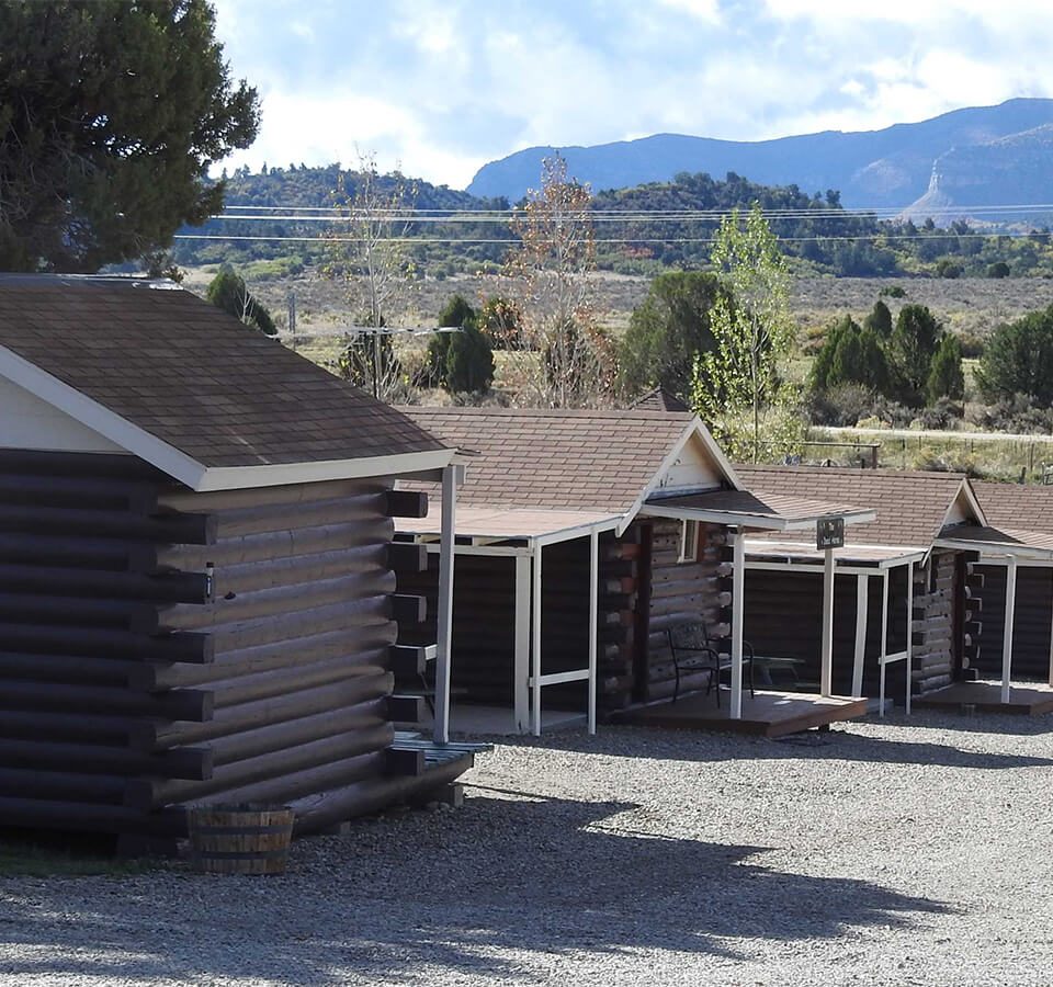 Our cozy deluxe log cabins measure approximately 10’x 12′. They comfortably sleep 4 to 5 people and include 1 queen bed and 2 bunk beds. Appliances in each cabin include TV, refrigerator, microwave, air conditioner, and heater. Each cabin offers a covered porch, covered picnic table and a free-standing grill. Primitive cabins (no running water) located close to restrooms, our adult hot tub and family swimming pool. Linens and towels are not included, you must provide your own linens and towels. Two day minimum stay required.